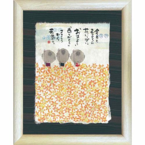 取寄品 御木幽石 今日もこころに花いっぱい ナチュラル 福福額 フレーム付き ポスター メッセージアート