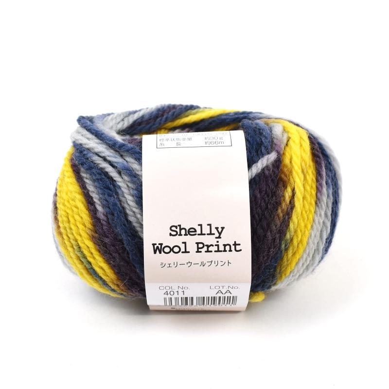 【5玉2袋セット】全13色 元廣 毛糸 シェリーウールプリント 並太 10玉入り 4011 ブルー・グレー・イエロー系マルチカラー