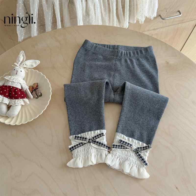 子供服 ガールズ レギンス スパッツ 全綿 女の子 ベビー服 ズボン グレー 黒 蝶結び レース 春秋