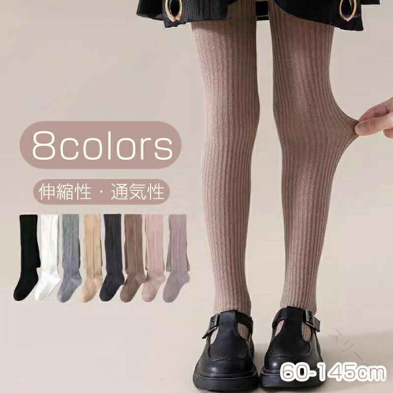 スパッ おしゃれ 可愛い 男の子 女の子 ジュニア 無地 パンツ リブ編み 綿 冬 あったかタイツ 滑り止め付き 厚手 キッズ タイツ