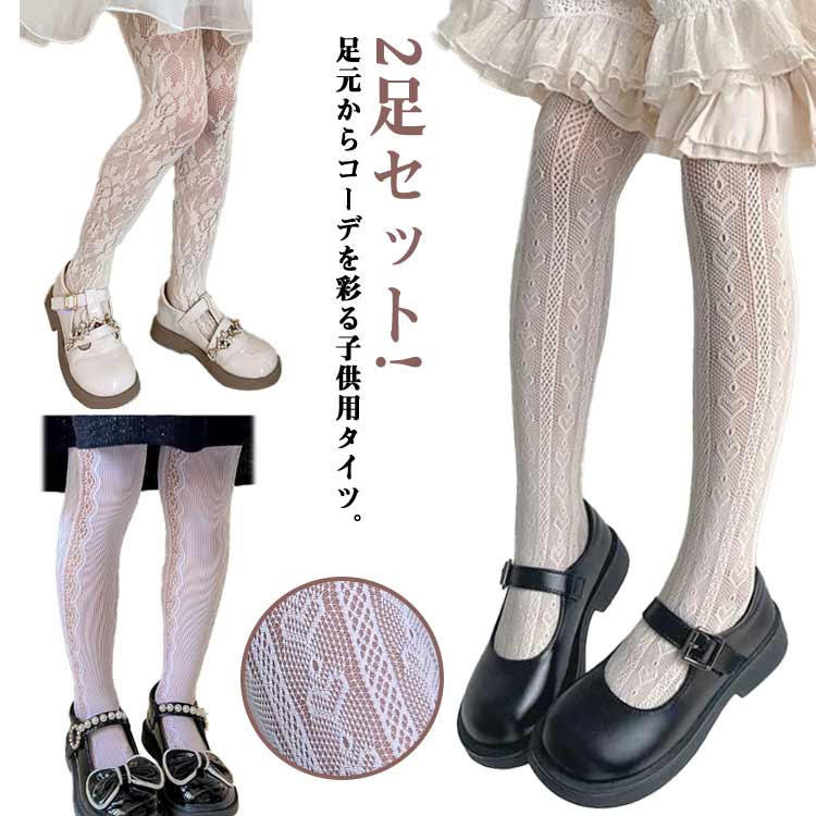 入園式 卒業式 七五三 入学式 コンクール 発表会 子供用 女の子 レースタイツ 子供 キッズ タイツ タイツ フォーマル 2足セット