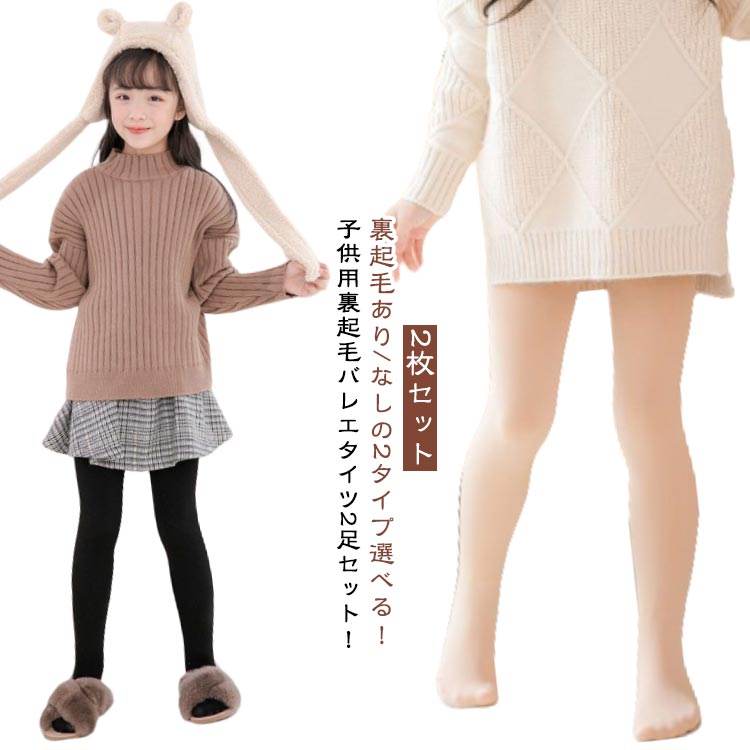 2枚セット 暖かい 微起毛 タイツ あつたか 女の子 キッズ 自然タイプ 裏起毛 痩せ見え 防寒 肌色 黒 着圧レギンス 裏起毛タイツ
