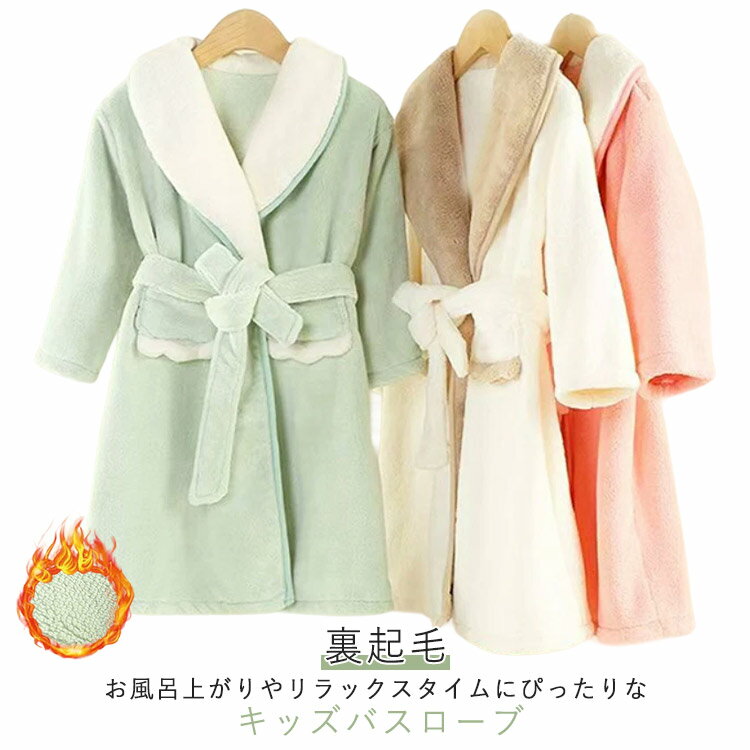 バスローブ キッズ 男の子 女の子 暖かい 秋冬 かわいい パジャマ もこもこ 厚手 ロング ルームウェア ブルー グリーン ホワイト