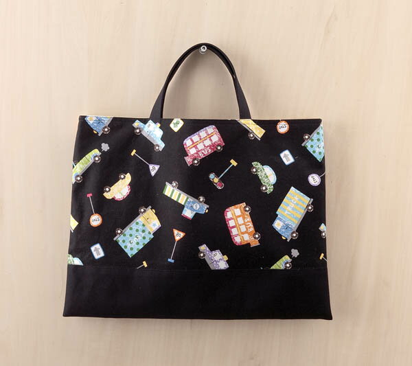 レッスンバッグ名札(氏名票)つき(通園・通学バッグ)縦30cm横40cm氏名票は内側についています。453黒の車