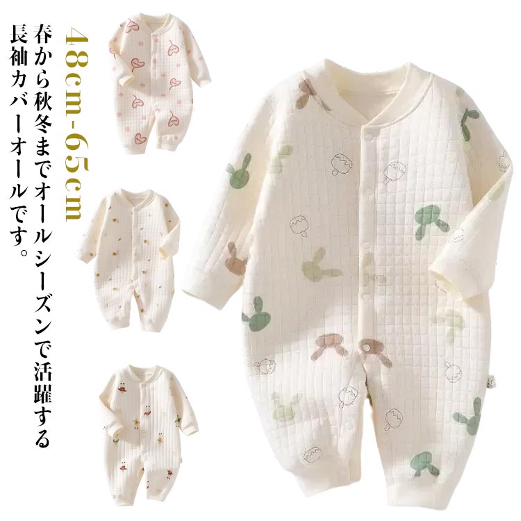 女の 男の子 新生児 ロンパース ベビー ベビー キルト 秋 ベビー 春 女の子 綿 新生児 男の子 カバーオール 前開き ベビー 長袖