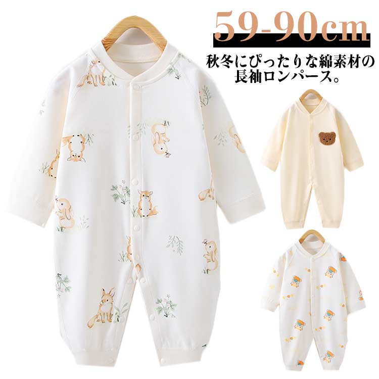 カバーオ 長袖 着くるみ 下着 部屋着 前開き 秋冬 あったか 防寒 柔らかい 中綿入り コットン 肌着 カバーオール ロンパース パ