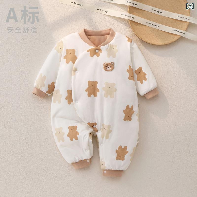 ベビー 男の子 秋冬 クローラー オールインワン 綿 厚手 長袖 カジュアル カーキ グリーン ピンク