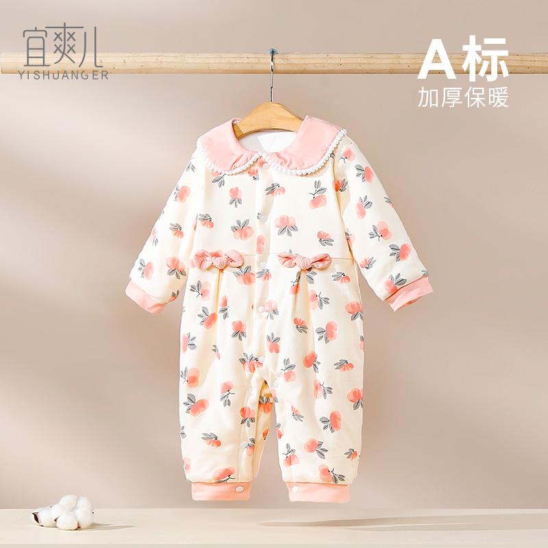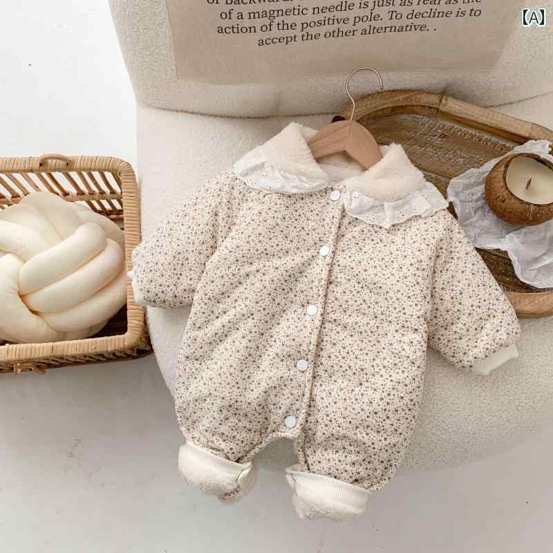 ロンパース かわいい 韓国 ベビー キルティング 厚手 ジャンプ スーツ 秋冬 花柄 暖かい 綿服 ロンパース 服 ベビー 外出着