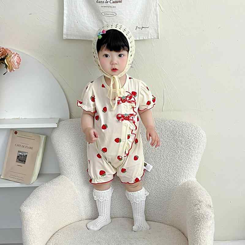 ロンパース かわいい 0 - 2歳 単層 コットン 生地 ベビー ジャンプ スーツ 春秋 2ヶ月 女 赤ちゃん 服 春 満月 ベビー 服