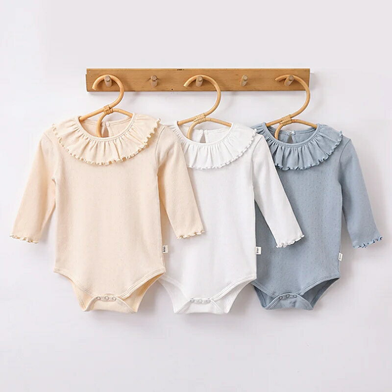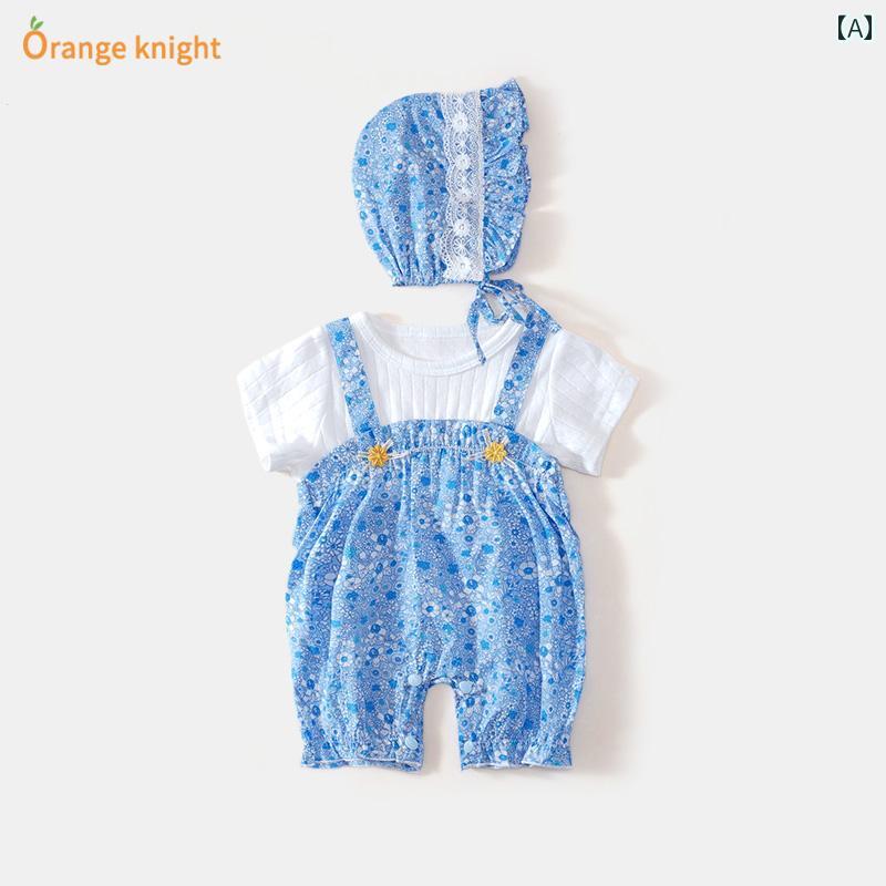 春夏新作 連体服 INS 乳幼児 綿 ボタン 女の子 長袖 シャツ 子供服