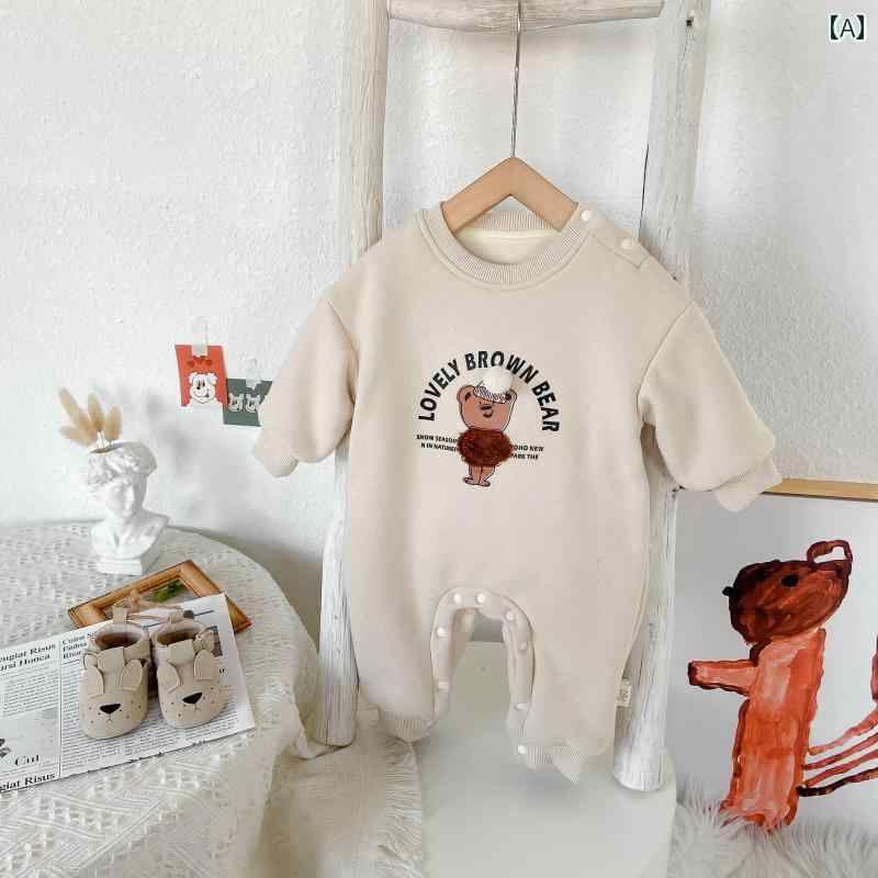 ベビーウェア かわいい 秋冬 赤ちゃん クマ 裏起毛 厚手 ワンピース 男子 冬服 韓国 西洋 クローリング 服