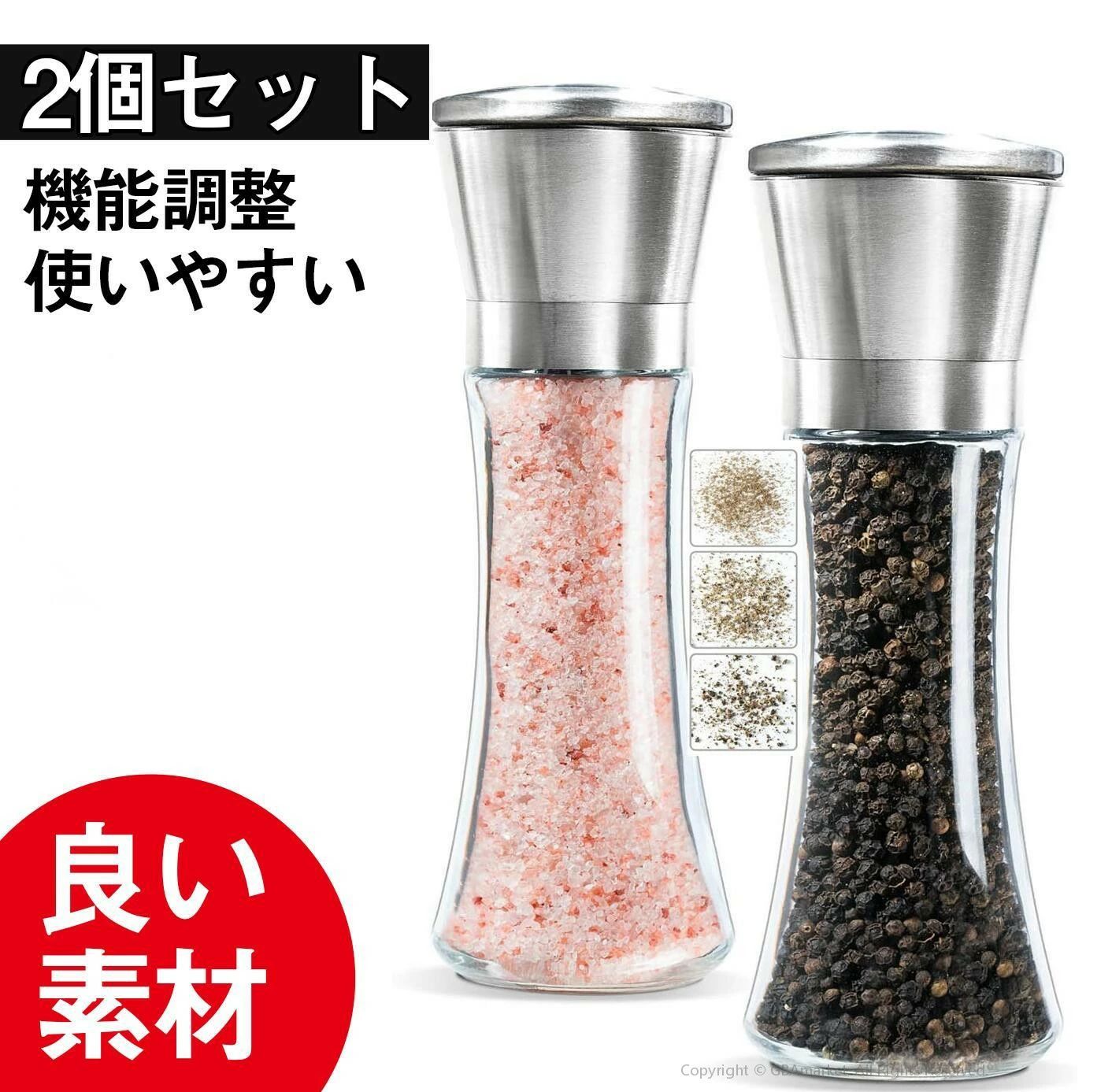 こしょう挽き 胡椒挽き ソルトミル 粗さ調節可能 胡椒製作器2点セット 胡椒料理用品 胡椒ミル岩塩ミル