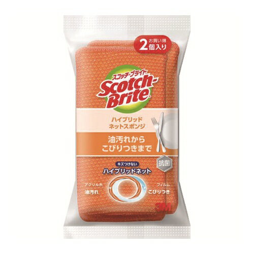 3M スコッチ・ブライト ハイブリッドネットスポンジ オレンジ(2個入) [HBNT-75E 2PM] 販売単位:1