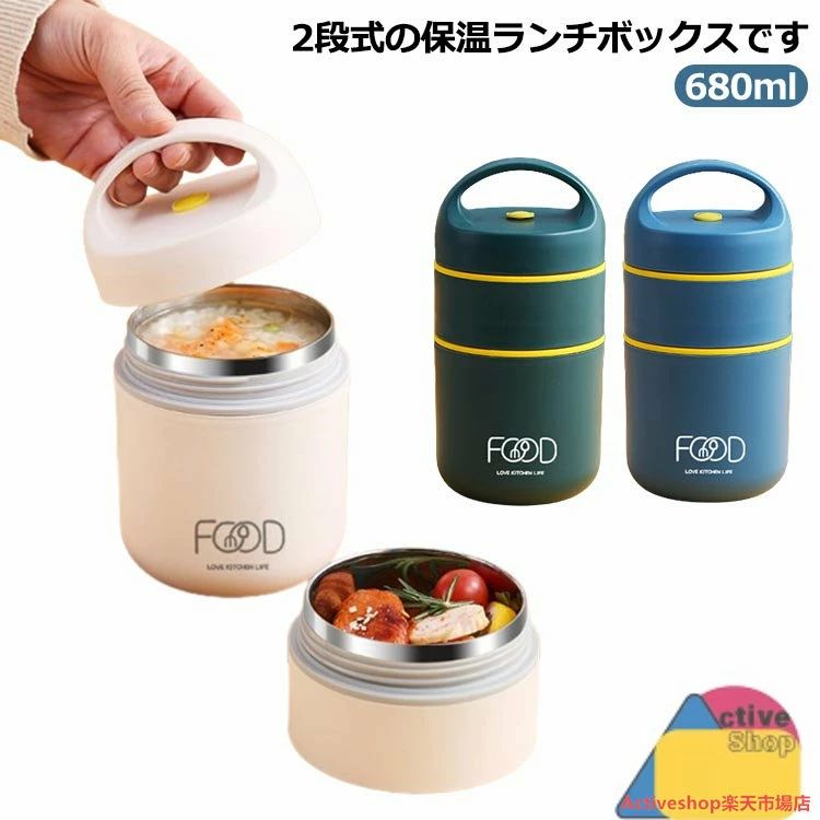 保温ランチボック 入園入学 軽量 2段 ステンレス ランチジャー お弁当箱 折りたたみスプーン付き 680ml 弁当箱 保温ランチジャー