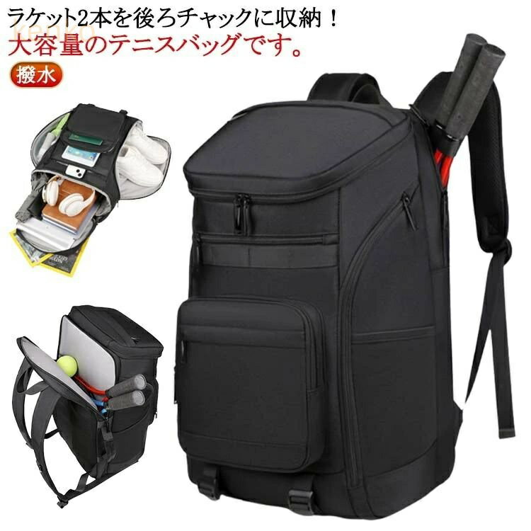 テニスリュック メンズ レディース 大容量 バックパック ラケット収納 撥水加工 ブラック シューズポケット 旅行対応
