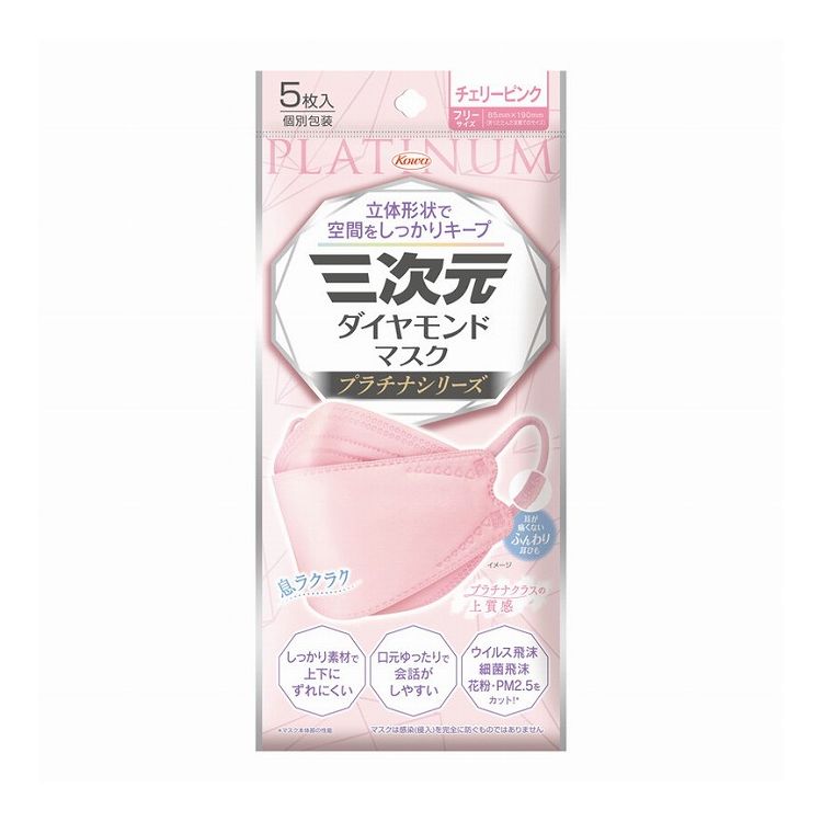 三次元ダイヤモンドマスク プラチナシリーズ フリーサイズ チェリーピンク 5枚