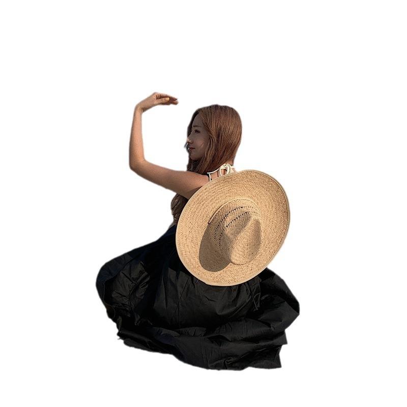 麦わら帽子 レディース 春夏 遮光 日焼け防止 つば広 ハット ビーチ リゾート 旅行 おしゃれ ブラック ベージュ 通気性 麻2