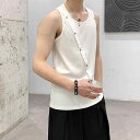 タンクトップ メンズ おしゃれ 夏 薄手 不規則 ボタン ノースリーブ カジュアル 個性 トップス