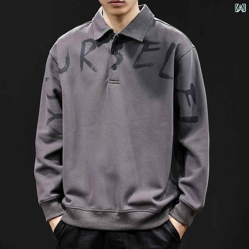 大きめサイズ メンズ ポロシャツ カジュアル ポロ カラー スウェットシャツ 厚手 紳士服 トレンディ 服 秋冬 長袖 レター プリント
