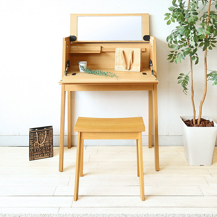 折り畳みデスク&ドレッサー ホワイト (FDR-0006-WHWH) メイク 収納 鏡 木目調 白 【代引不可】