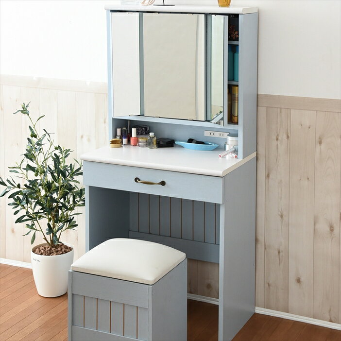 ドレッサーテーブル【送料無料】【ドレッサー MD-6588】高さのあるメイク道具もたっぷり収納 スツール付き