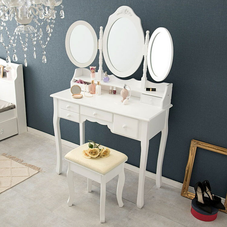 ドレッサー 椅子付き 白 おしゃれ 姫系 三面鏡 アンティーク ホワイト ドレッサー 化粧台 鏡台 スツール付き レトロ