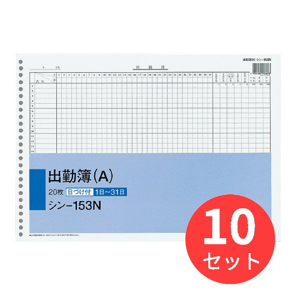 【10冊セット】コクヨ 社内用紙B4 出勤簿26穴(A)20枚 シン-153N【まとめ買い】