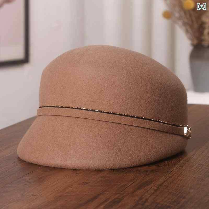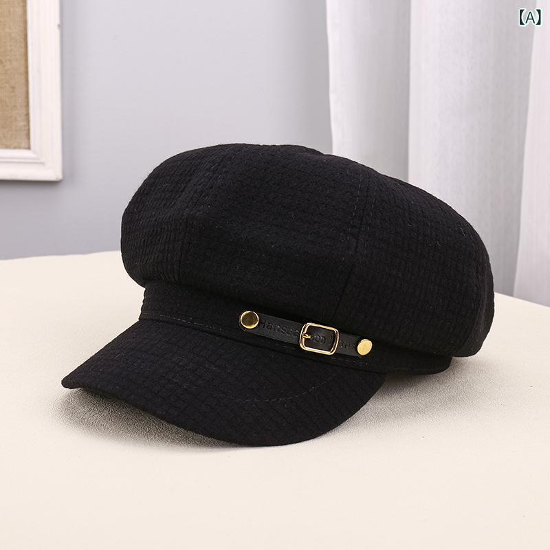 ベレー帽 レディース 春秋 八角帽 大頭 小顔効果 金属チェーン飾り ハンチング帽 カーキ ベージュ ブラック