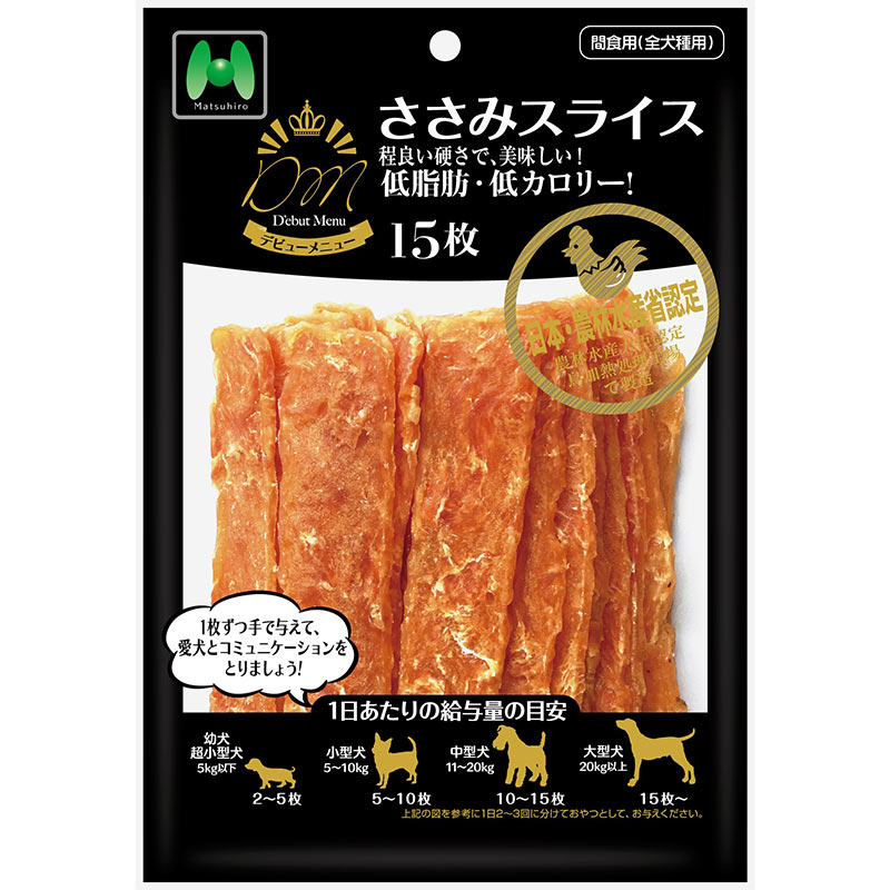 (まとめ買い)マツヒロ D’ebutMenu ささみスライス 15枚 犬用おやつ 〔×16〕 【北海道・沖縄・離島配送不可】