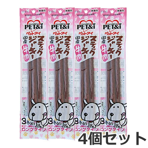 【メール便】4個セット ペットアイ スティックジャーキー ロングタイプ 牛肉 3本入×4個セット 犬用おやつ 送料無料