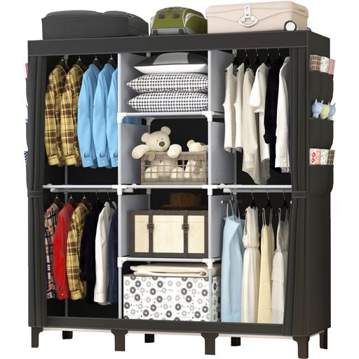 SumDepot2列棚ワードローブ組立式大容量ハンガーラック布製洋服整理引き出し付きカバー収納ボックス対応省スペース多層構造ホワイト