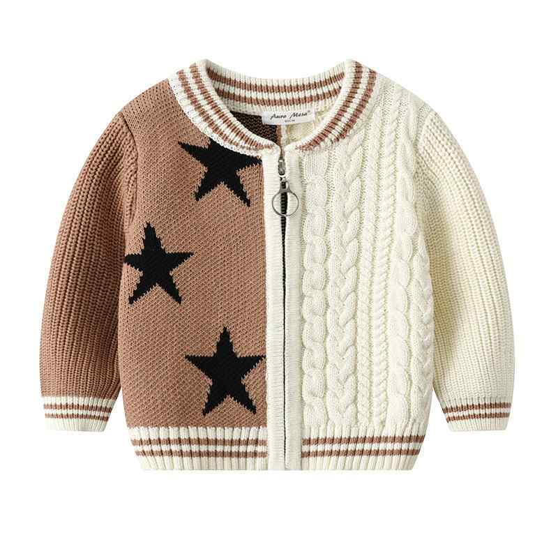 子供服 カーディガン 秋冬 長袖 ニット セーター 男の子 配色 切り替え ジップアップ アウター ベビー 韓国風 綿100% 黄色