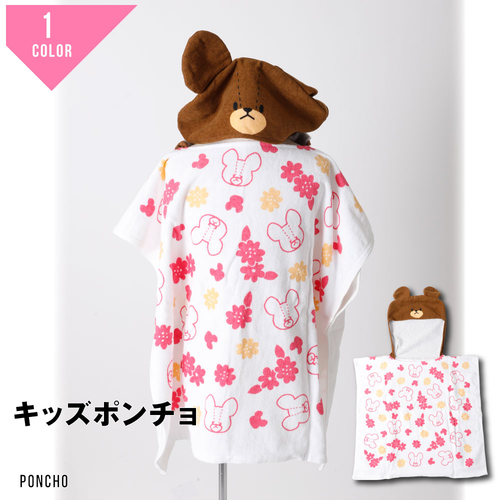 くまのがっこう ポンチョ キッズポンチョ ジャッキー フード 耳付き コスプレ 子供 プール バスタオル