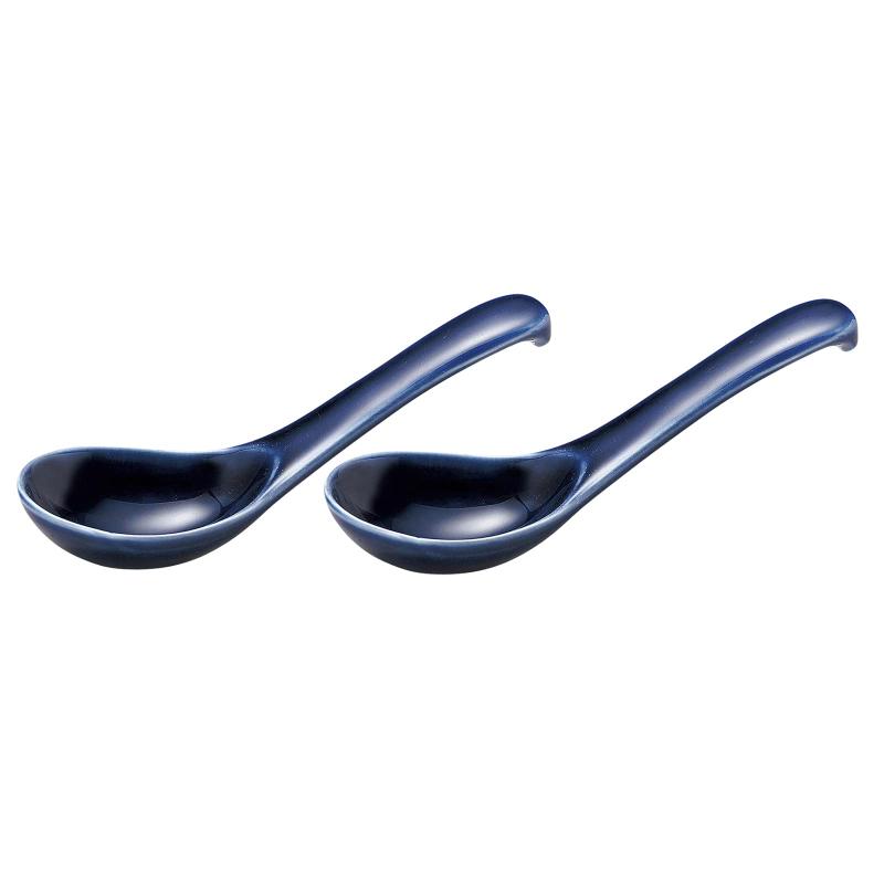 萬古焼 銀峯 菊花 レンゲ 陶器 スプーン (小) 2個セット 瑠璃釉 長さ約15cm 日本製 96021-2