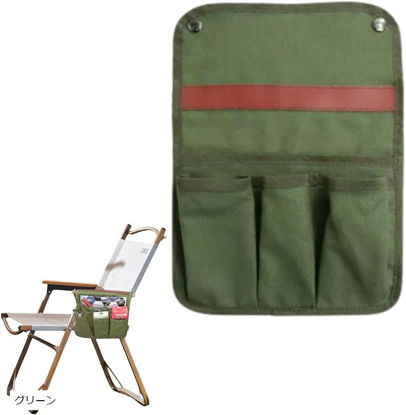 チェアサイドポケット アウトドアチェア キャンプ (グリーン, 24cm x 3cm x 32cm)