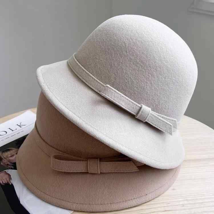帽子 レディース 秋冬 ウール 漁師帽 フレンチ レトロ エレガント あったか ハット 白色 黒色 ベージュ