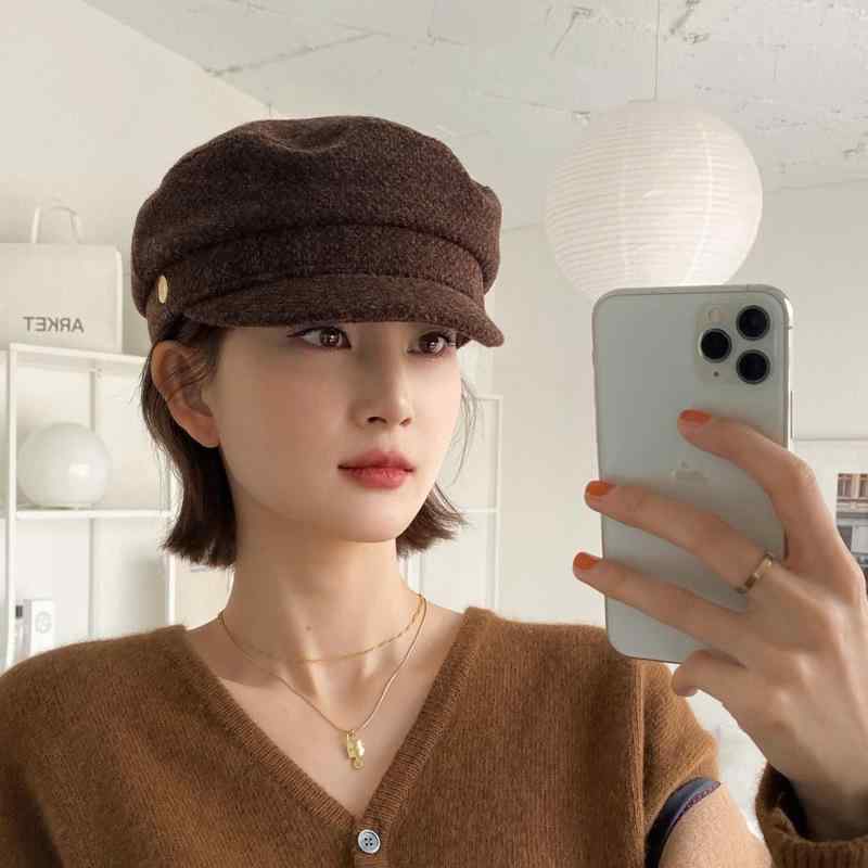 ベレー帽 レディース 秋冬 ウール混紡 ハンチング帽 防寒帽子 小顔効果 レトロ 画家帽子 八角帽 ブラウン ブラック系