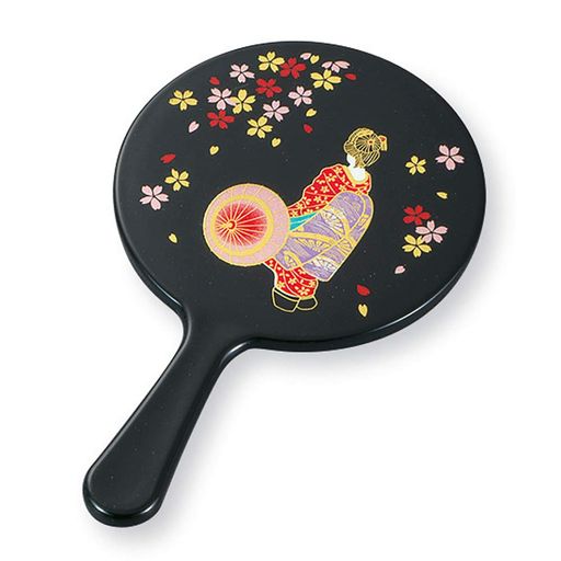 ミタニ山中漆器鏡黒12.2cm山中塗舞妓さん姫鏡M16972-0