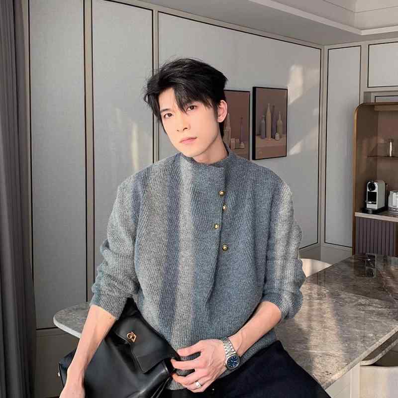 ニット メンズ タートルネック プルオーバー 秋冬 トップス 長袖 アクリル モダール 混紡 ゆったり リラックス 普段使い