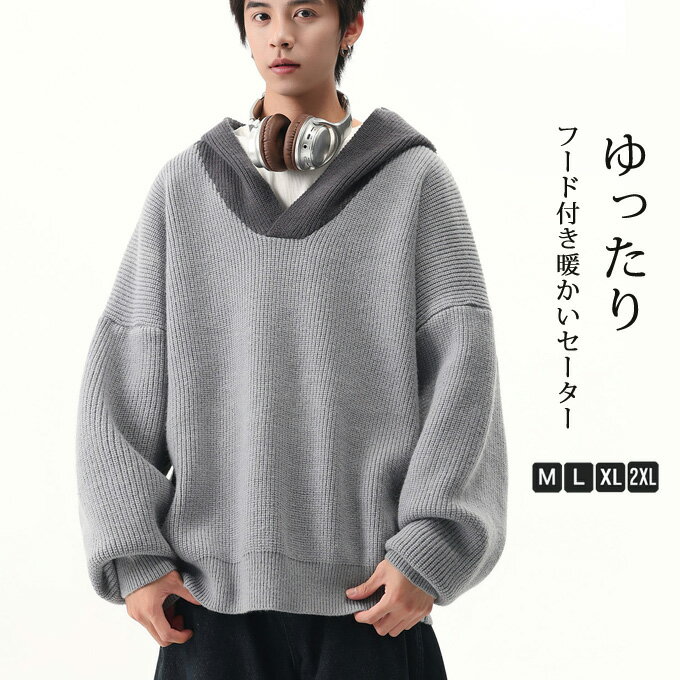 秋 プレゼント 父の日 厚手 メンズ 上品 クリスマス ス 大きいサイズ セーター お 誕生日 暖かい フード付き カジュアル 長袖 冬
