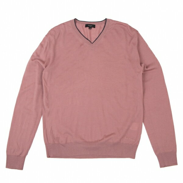 【中古】 ポールスミス ロンドン Paul Smith LONDON ウール裾ロゴ刺繍Vネックニット ピンク紺M【メンズ】
