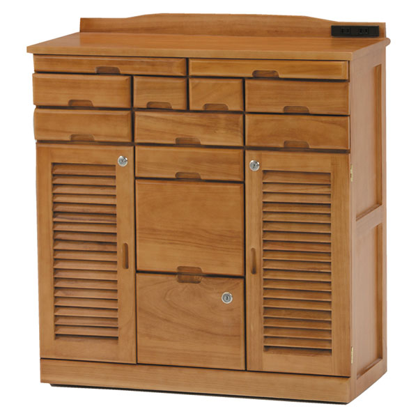 ファックス台キャスター付 テレビ台 チェスト コンセント付 76センチ幅 ライトブラウン色 引出し付き収納 鍵付き 完成品