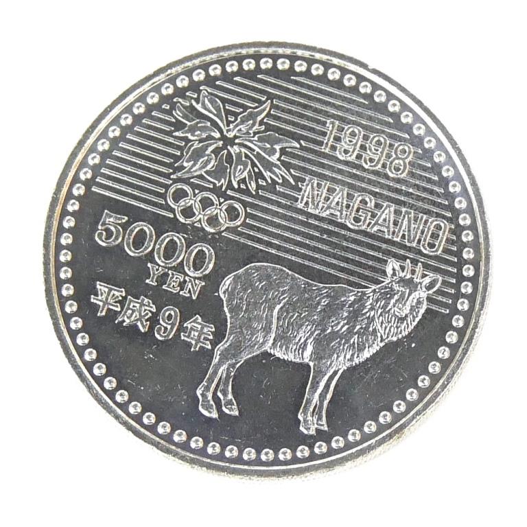 H9 長野オリンピック 記念硬貨 5千円銀貨 アイスホッケー 記念貨幣 【中古】(69674)