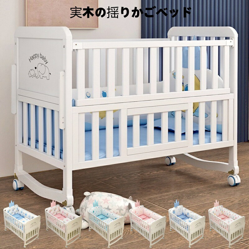 ハイシートベビーベッド腰に負担をかけないハイタイプ ナチュラルベビーベッド ベビーベッド3段階の高さ調整 ベビーサークル 添い寝 多