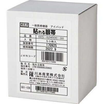 貼れる眼帯 滅菌済 1枚パック 025−624500−00 50枚入