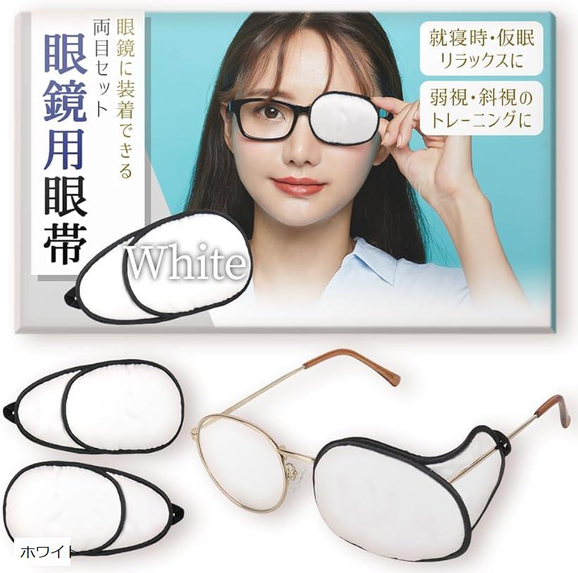 【楽天ランキング1位入賞】現役の眼科医推薦 メガネ用 眼帯 両目兼用 2個セット シルク素材 ホワイト (ホワイト)