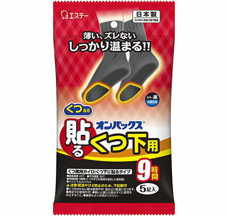 ☆つま先ポカポカ、両面通気で温かい!エステー くつ下用オンパックス(粘着剤付き)黒タイプ 5足入り