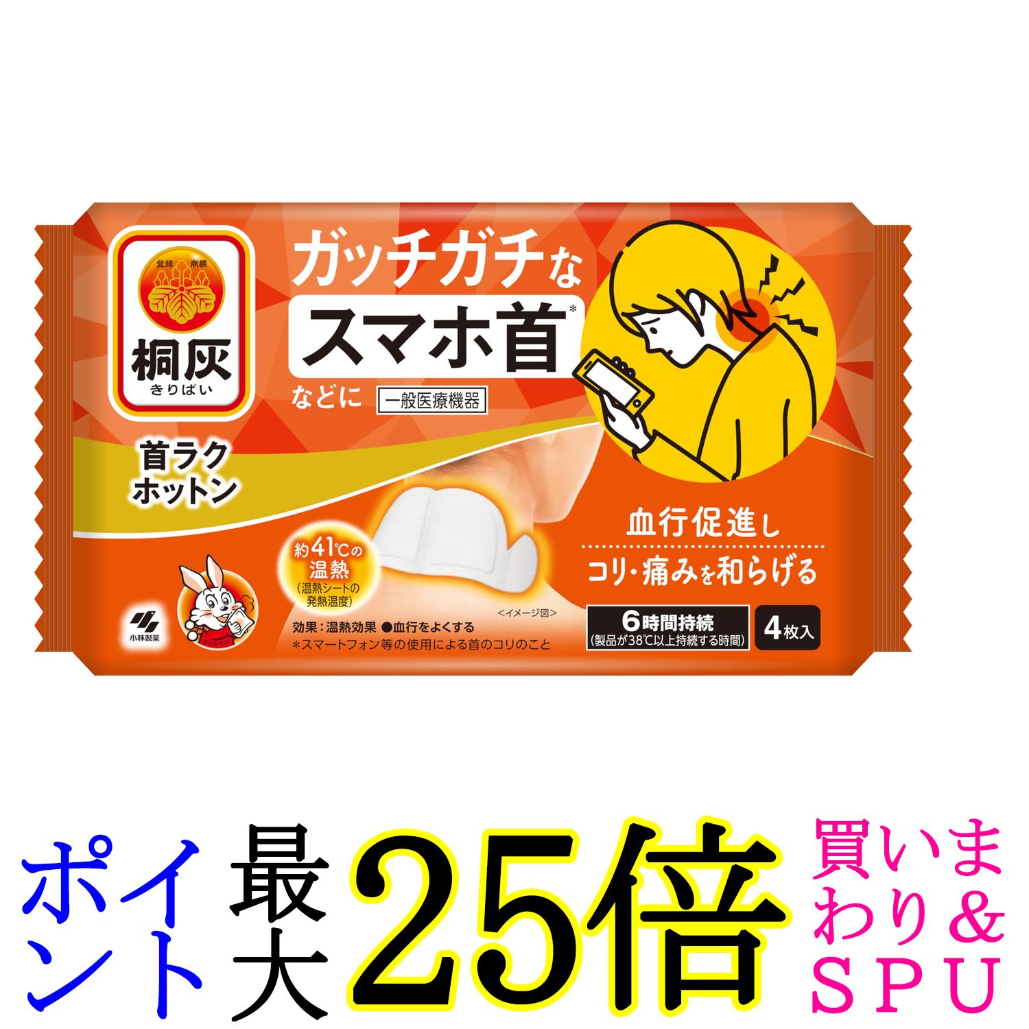 小林製薬 桐灰 首ラクホットン ガッチガチなスマホ首などに 4枚入 送料無料