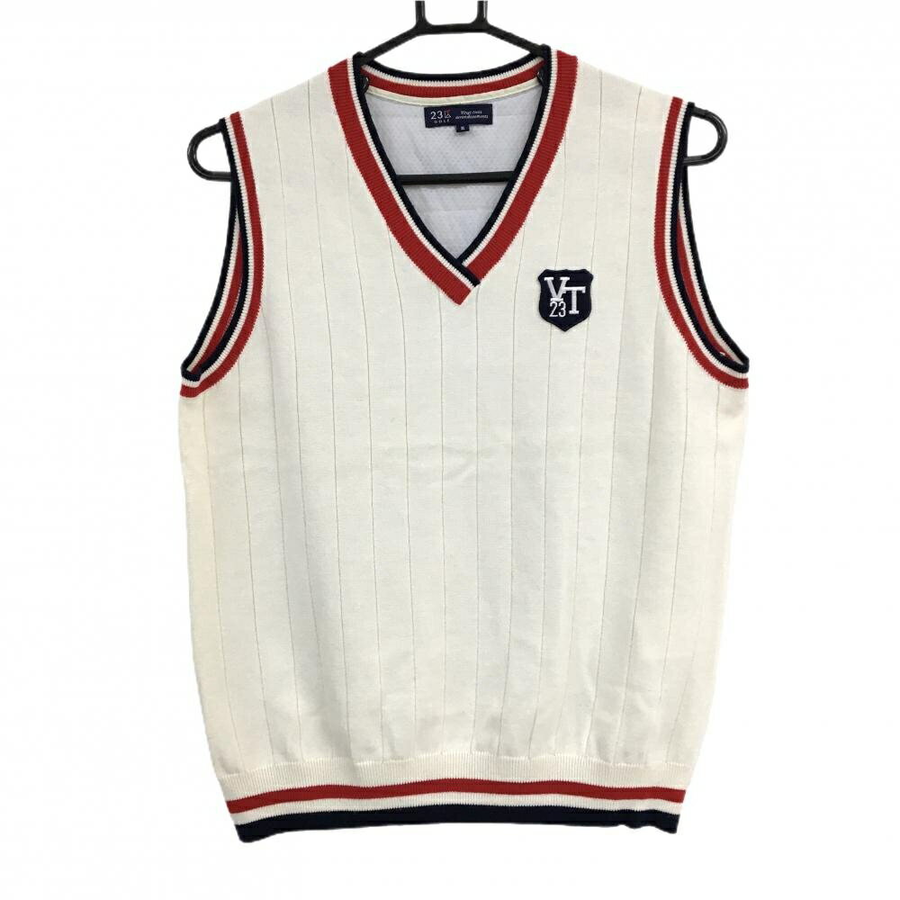 23区ゴルフ 中綿ベスト アイボリー×レッド Vネック 背面中綿 ロゴワッペン レディース II(L) ゴルフウェア 23区