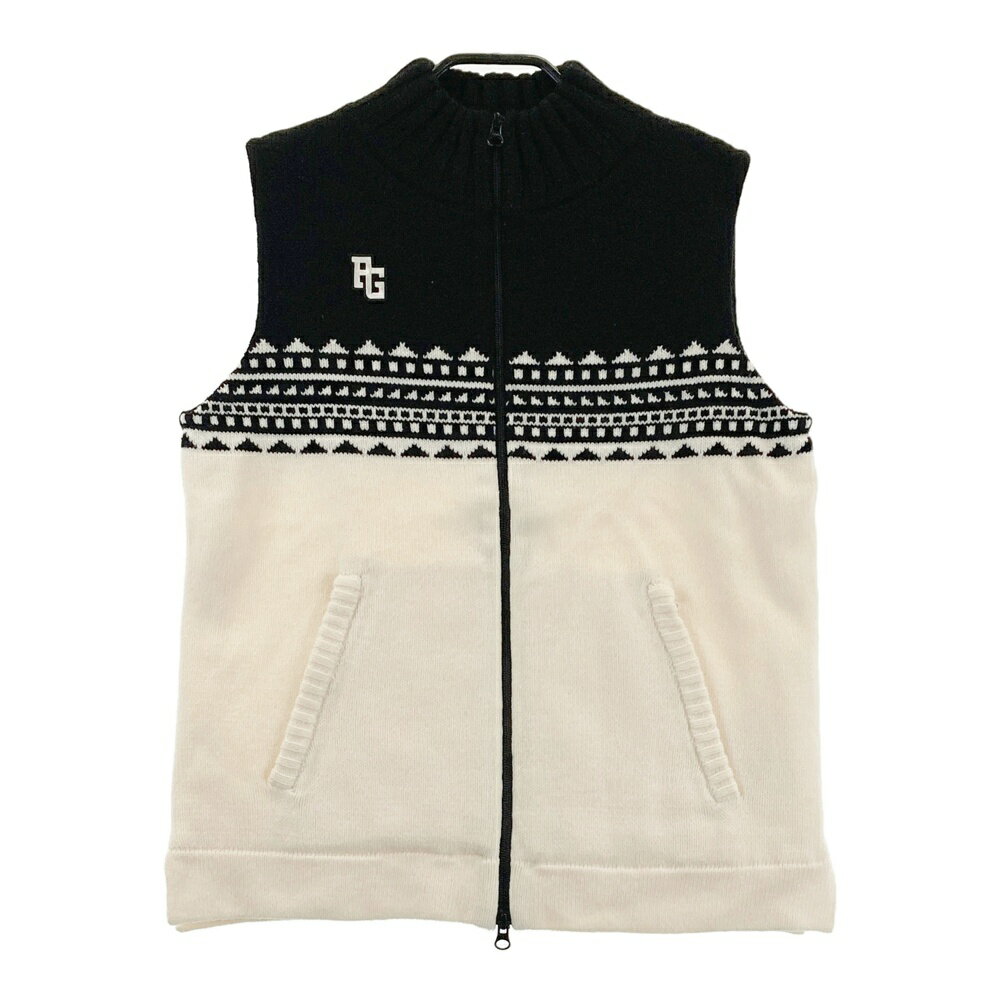 【超美品】ミズノ ニットベスト 黒×アイボリー Vネック 裾リブ レディース M ゴルフウェア MIZUNO
